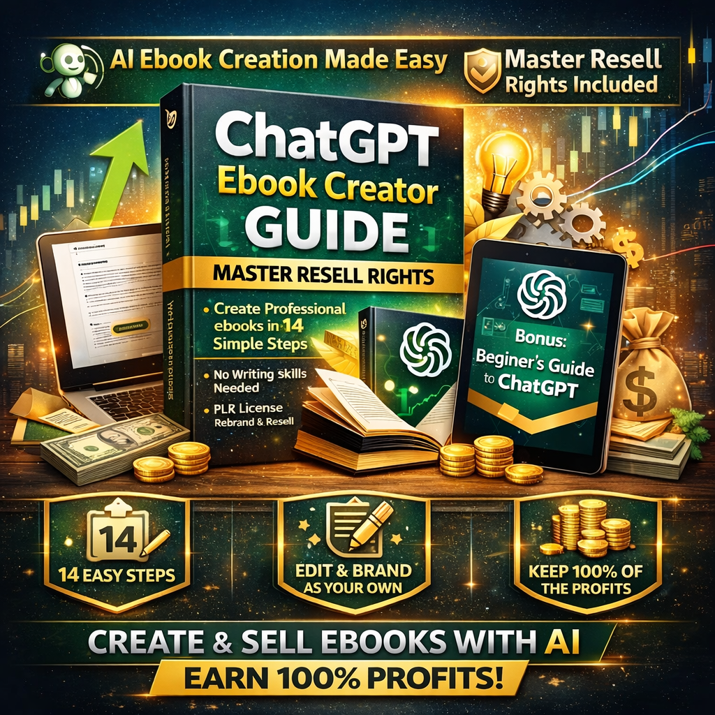 Turn your ideas into a reliable source of passive income with the ChatGPT Ebook Creator Guide with Master Resell Rights. This powerful resource helps you create and sell professional-quality ebooks using AI tools, even if you are just starting out.