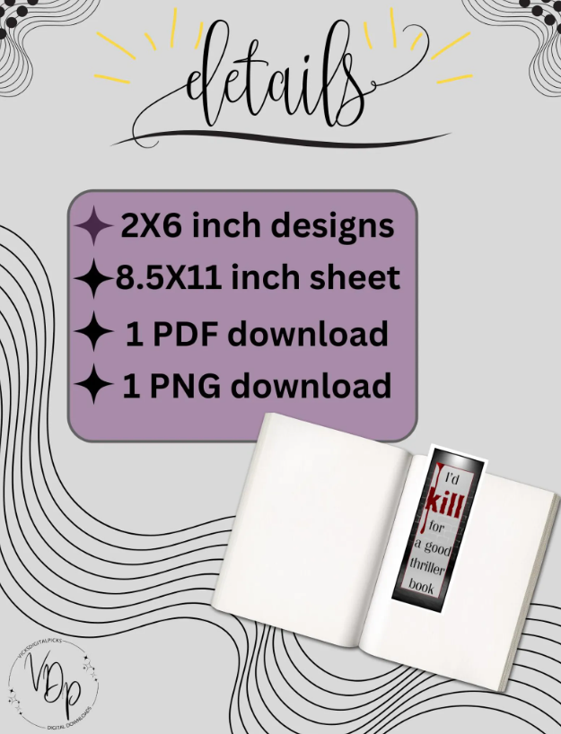 • 1 PDF print-ready file (8.5 x 11”) featuring 2 x 6” bookmark designs